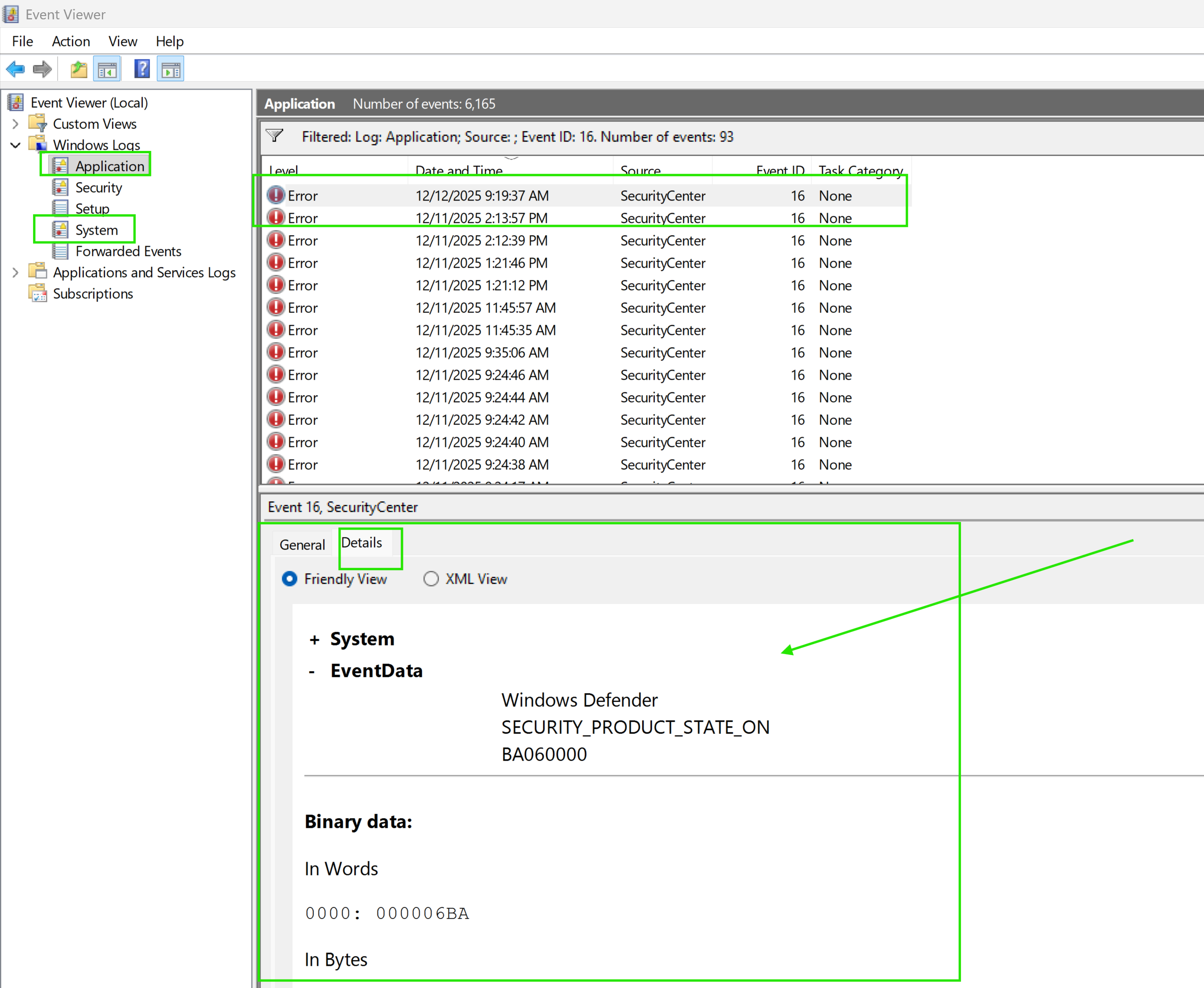 For every error found, switch to the Details tab and copy the error content into a separate file, as shown in the screenshot below: