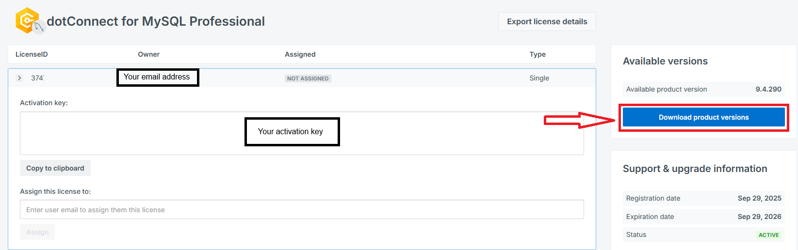 In .NET Framework applications, the license key does not need to be entered manually. Activation is handled through the installation of the licensed product. After downloading dotConnect from the Customer Portal and completing the installation, the assemblies function under the purchased license without additional configuration.